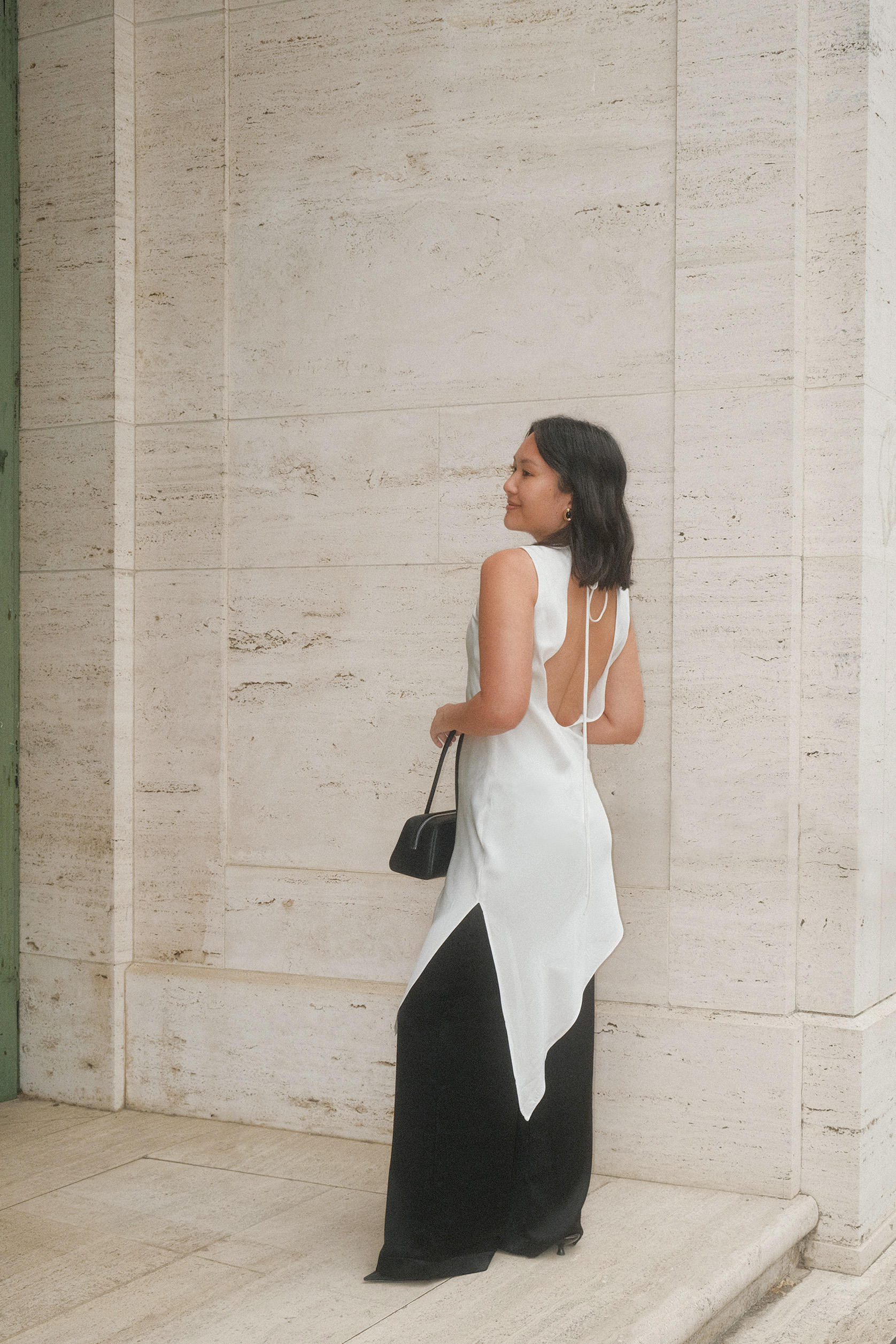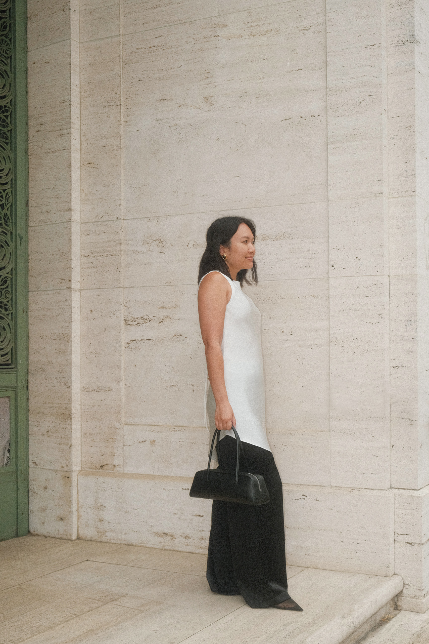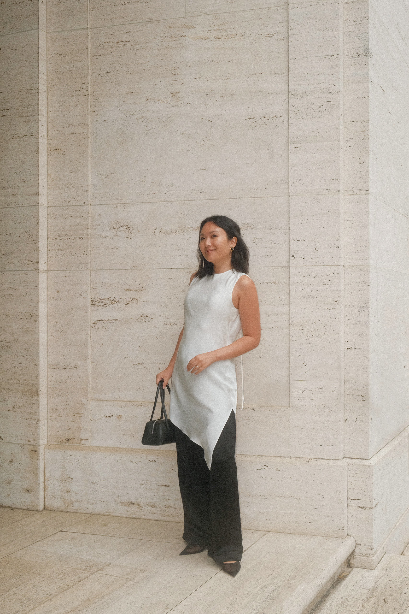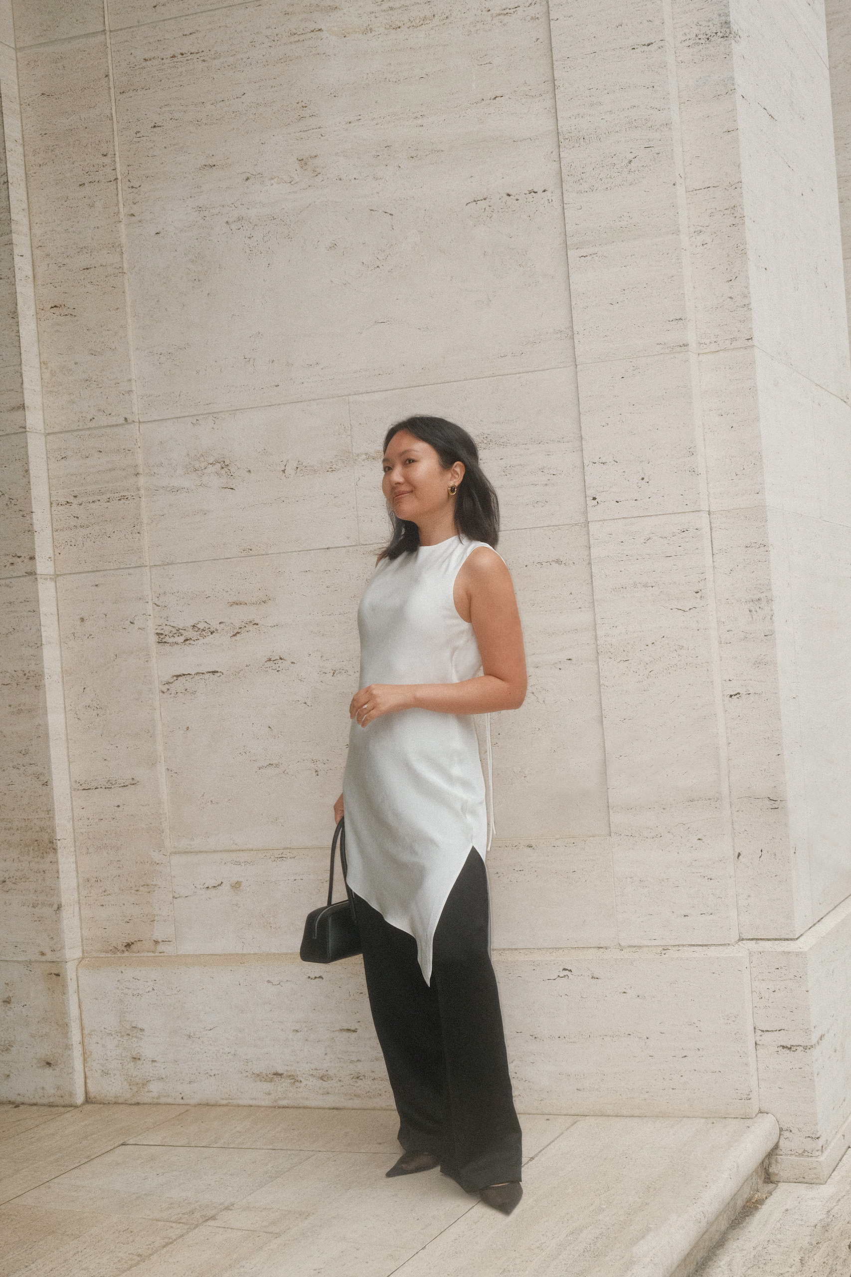 This is one of my favorite outfits I’ve worn this year, probably second to this one I wore earlier this summer. Clearly, I love the effect of one long, sweeping layer acting as an elegant centerpiece to an otherwise very simple outfit. I always laugh to myself when the dress-over-pants trend comes back around again, because the look is very reminiscent of a Vietnamese áo dài, which is the traditional attire that women have been wearing for centuries. Remember this look from 2017? Or how about this one from 2018? And this one from 2019? Based on this trajectory, I predict we’ll circle back around to this trend again in the next five years.
