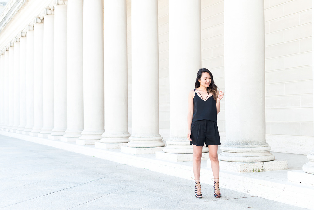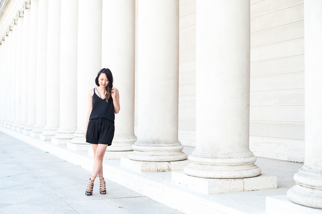 Sharing part two of my collab with Centro39 and styling more pieces from designer Giada Forte. I wore the white version of this top last week for an updated 70s look, but paired the black version with longline shorts this time around for a classic, pulled-together look— it’s so easy to switch up your vibe with these pieces. Love how it looks against the elegant, regal pillars!