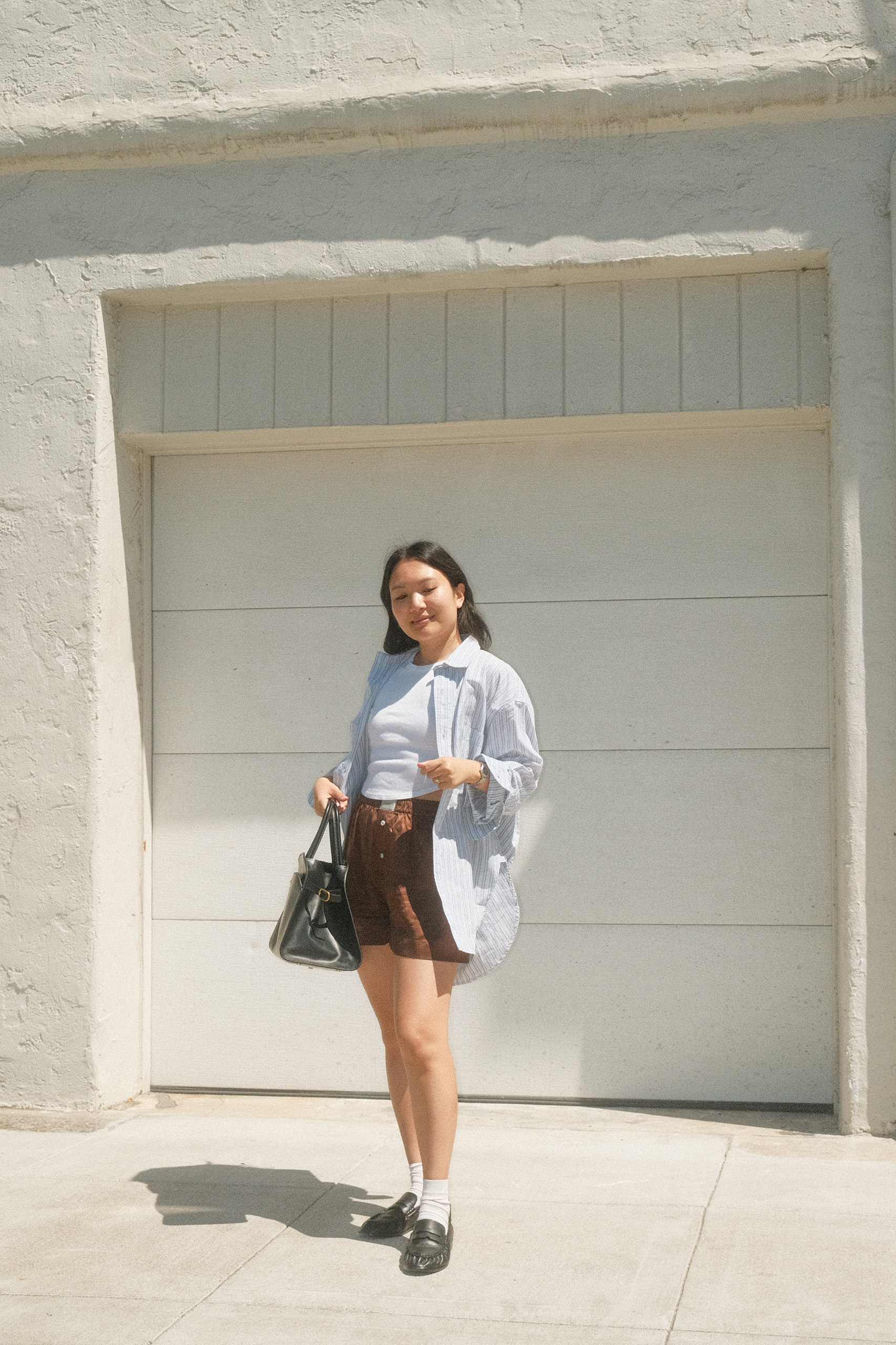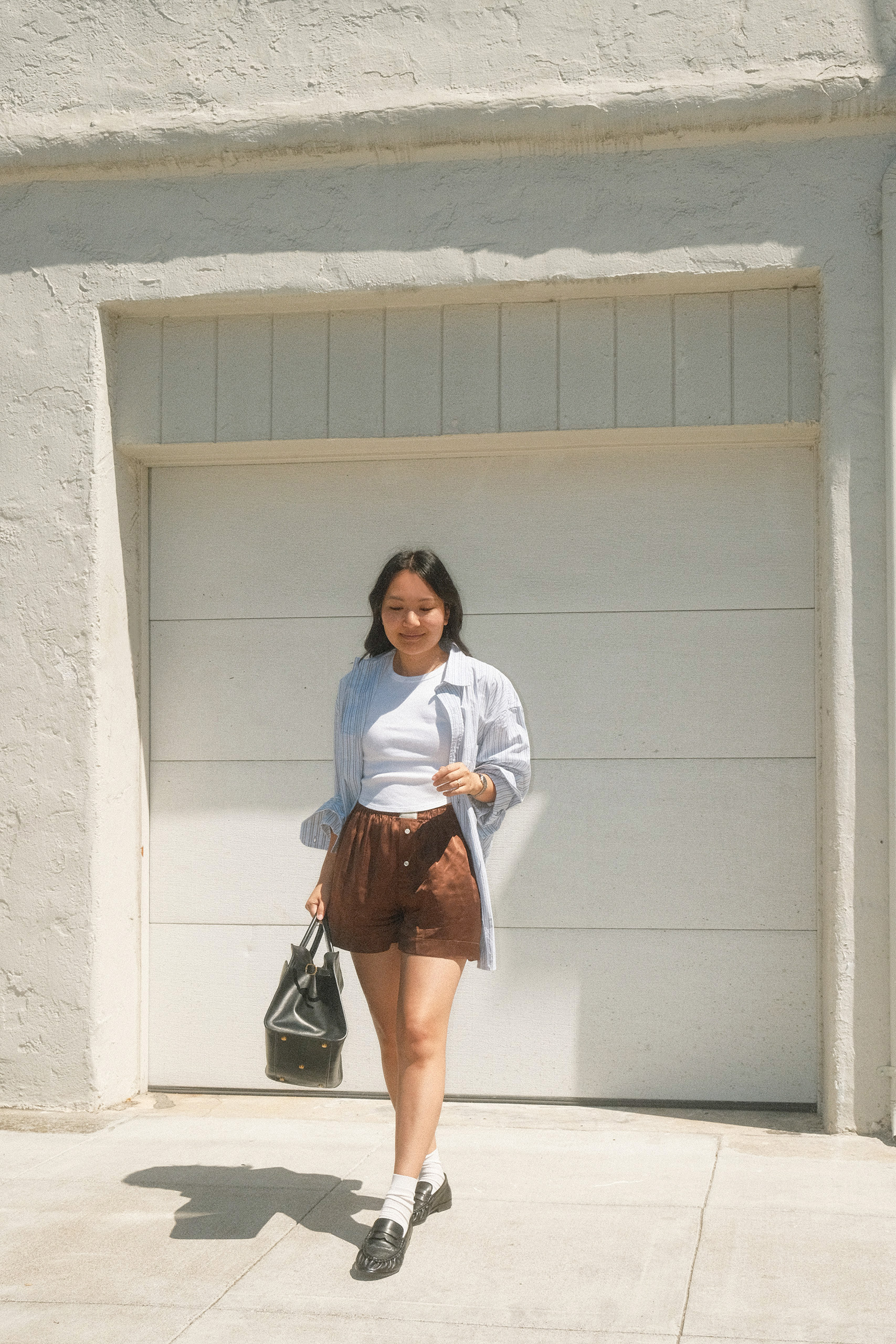 8.6.2025Citizens of Humanity shirt, Aritzia top, Comme Si shorts, ASOS loafers, Elborn bag, vintage Gucci watch